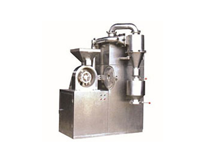 本機(jī)組主機(jī)、輔機(jī)、集管道、電控器定量加料裝置為一組。輔機(jī)有旋風(fēng)和脈沖式除塵器、主機(jī)內(nèi)裝有離心分級(jí)裝置,除可完成粉碎外,還具有分級(jí)功能,分選式離心剪切,無篩無網(wǎng),粉狀顆??扇我庹{(diào)節(jié),物料粉碎后,采用負(fù)壓輸送至排閥出口,達(dá)到制品要求,該機(jī)組是制藥、食品、化工工業(yè)的理想機(jī)械。
